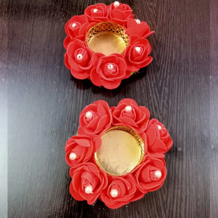 Ideal for Diwali, Karwa Chauth, Navratri, weddings, pooja décor, or home decoration, these floral diya holders blend traditional charm with modern elegance.