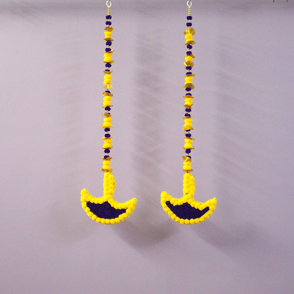 Yellow & Blue Pom Pom Diya Shape Latkan for Diwali Decoration